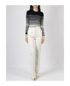 Alexander McQueen White Pullover With Peplum Waist And Jewel Buttons In Wool And Cashmere Woman