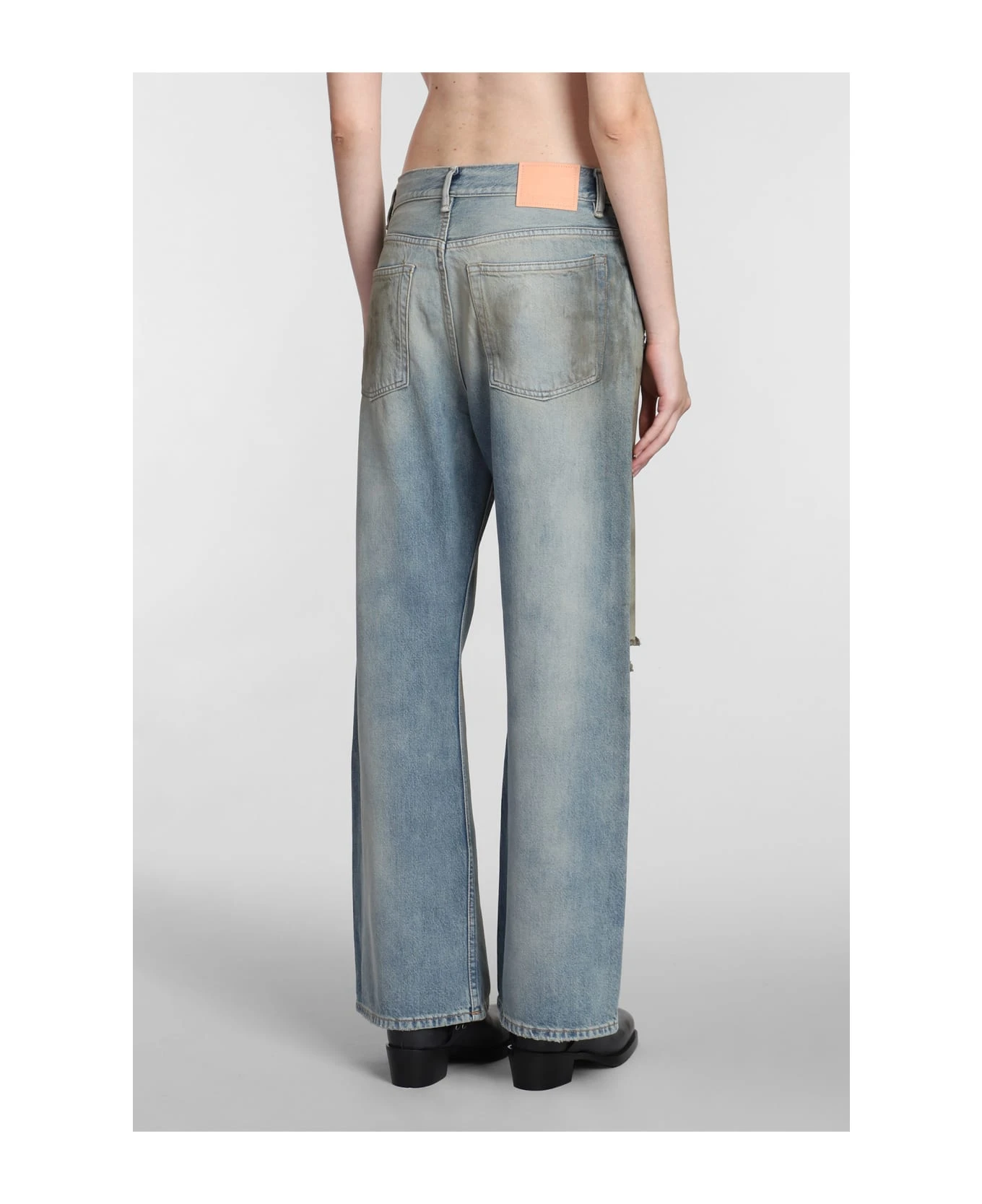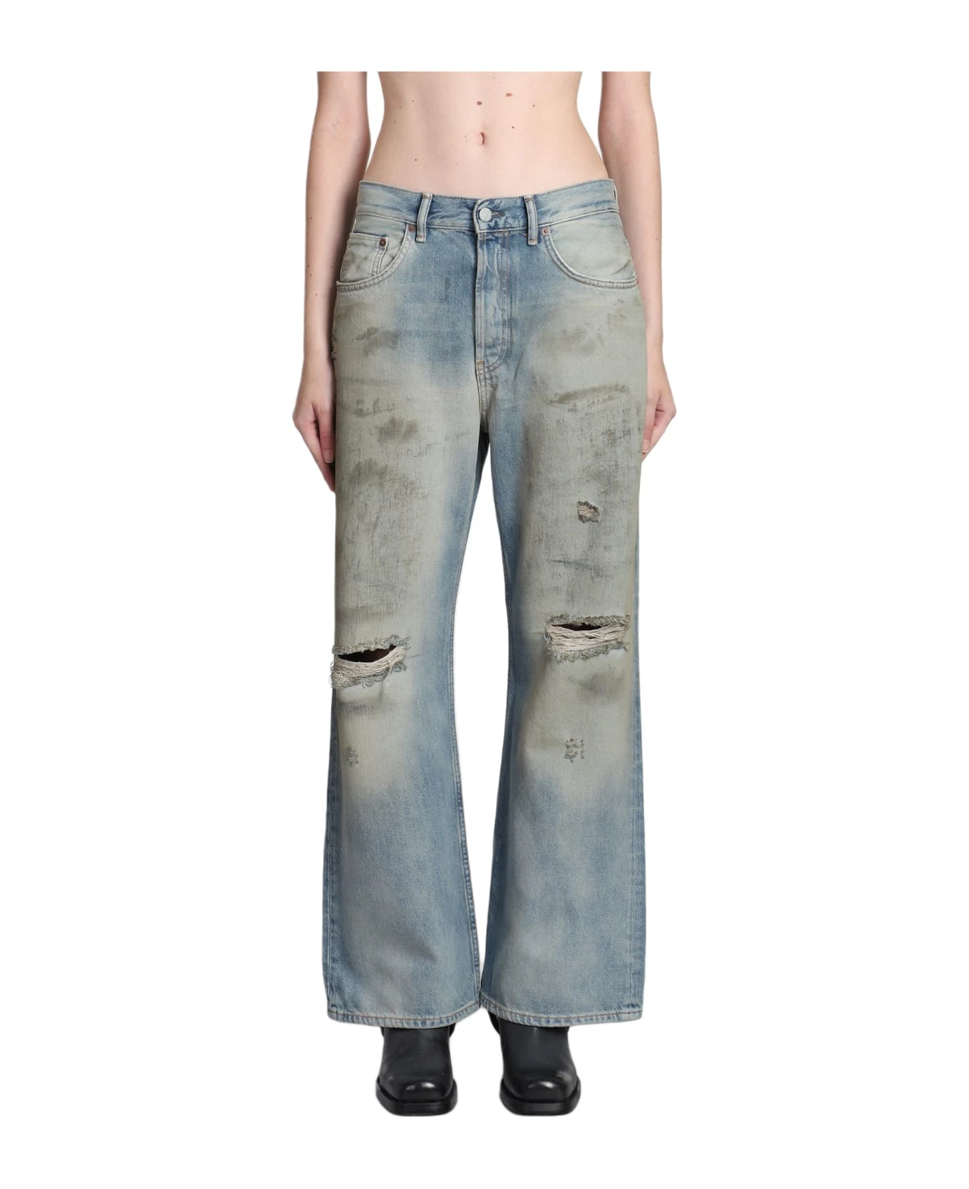 Jeans in cyan cotton, destroyed detail, button and zip closure, five pockets, waist belt loops, sandblasted, 100% cotton, Made in Italy, Model is 180 cm and wears size 28