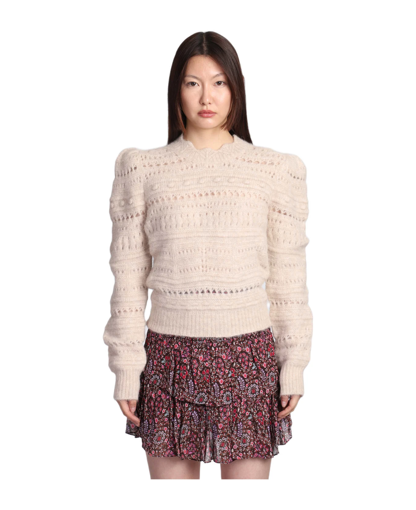 Adler Knitwear In Beige Alpaca, Long Sleeves, Ribbed Cuffs And Bottom, Tricot Knit, Waves Curved, 59% Baby Alpaca, 36% Polyamide, 5% Elastan, Made In China, Model Is 1. 77 Cm And Wears Size 36