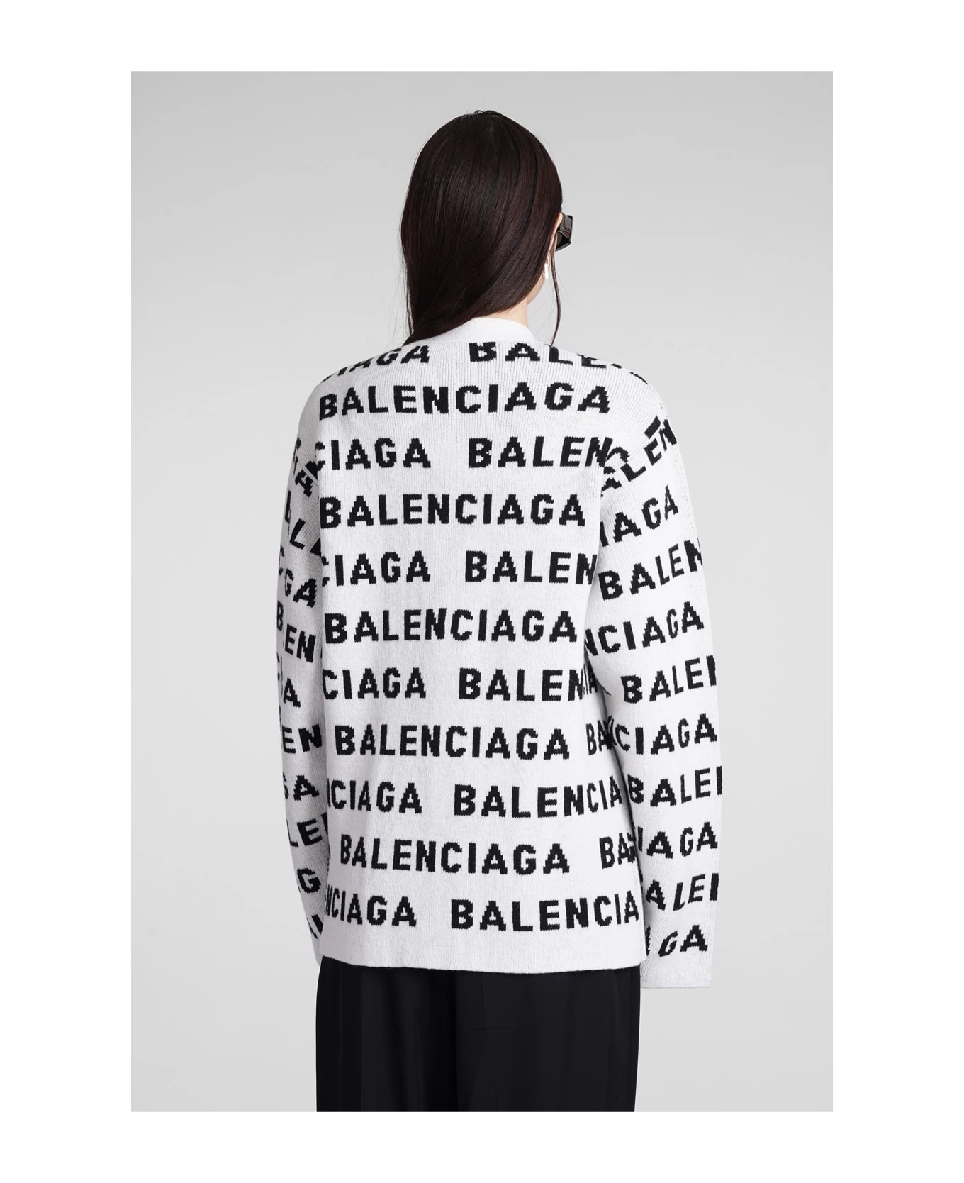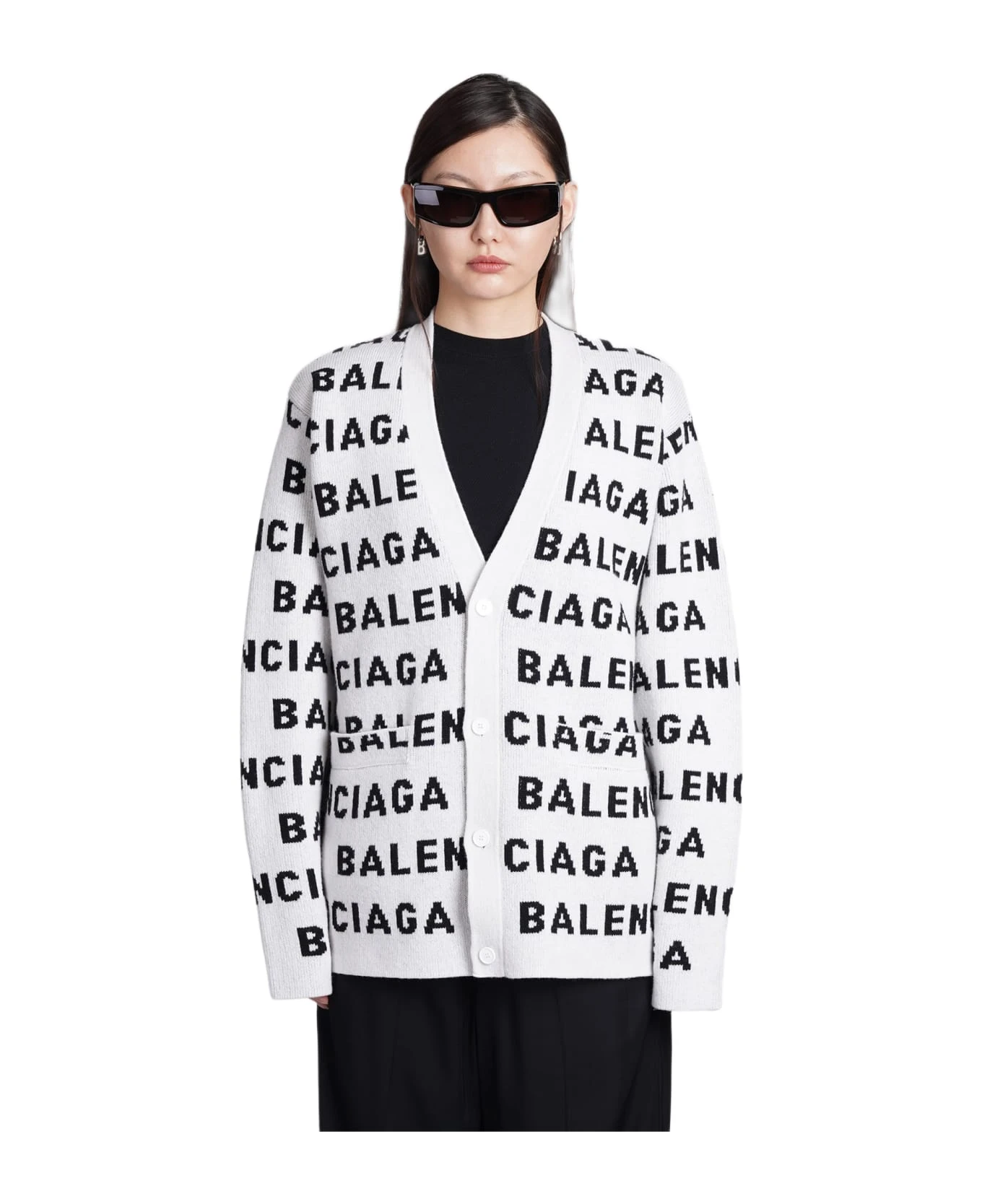 Cardigan in white wool, long sleeves, frontal buttoning, monogram embroidered, ribbed cuffs and bottom, 98% wool, 2% polyamide, Made in Italy, Model is 180 cm and wears size 1
