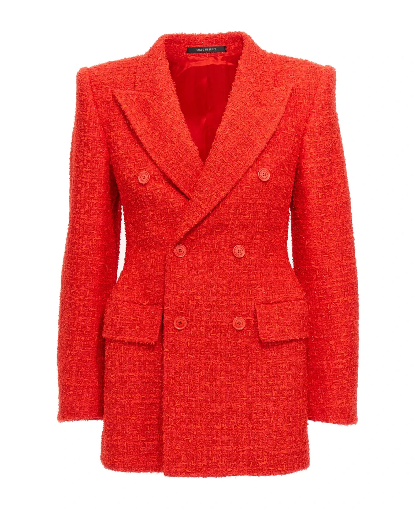 Hourglass’ cotton blend blazer jacket with double breast, a button closure, pockets, long sleeves, padded shoulders and flared waistband.