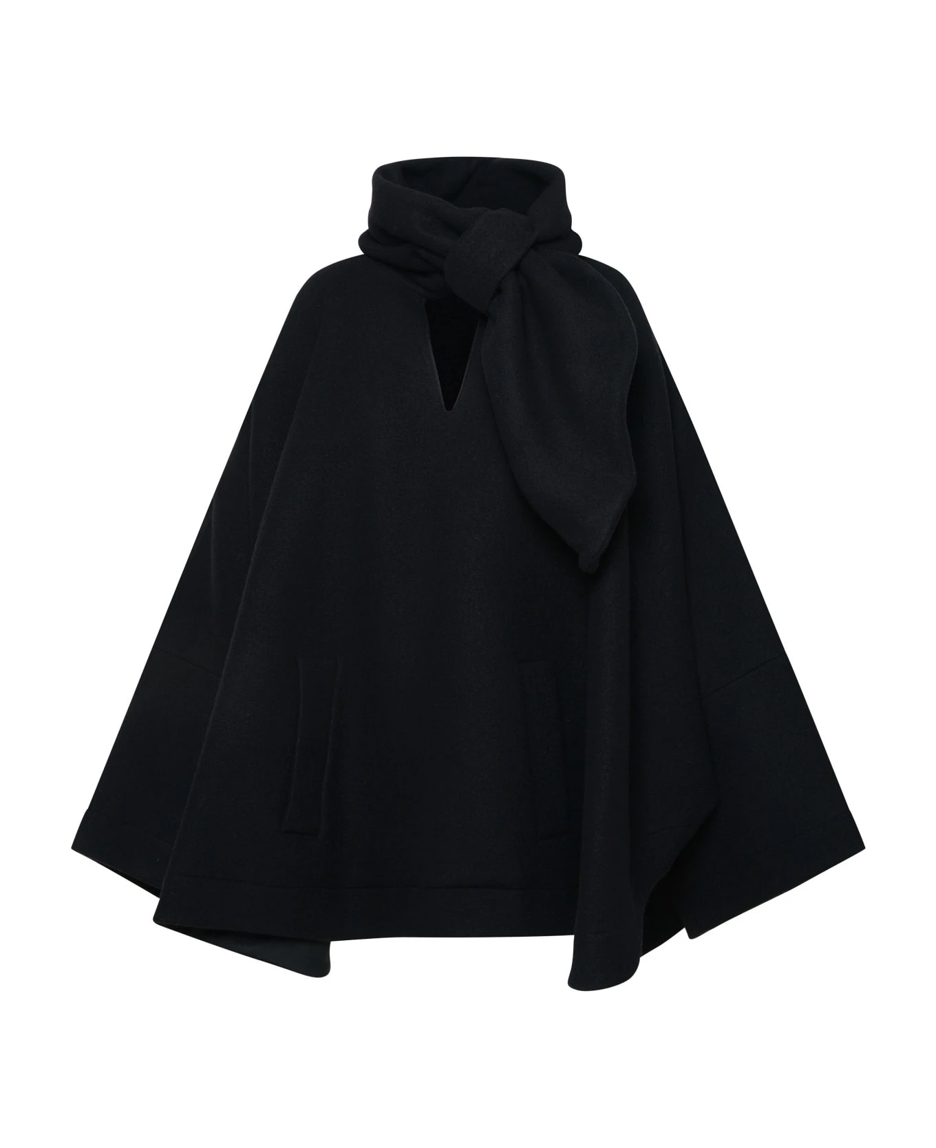 Oversize fit, bow neck, V-neck, side welt pockets, metal plaque on the sleeve