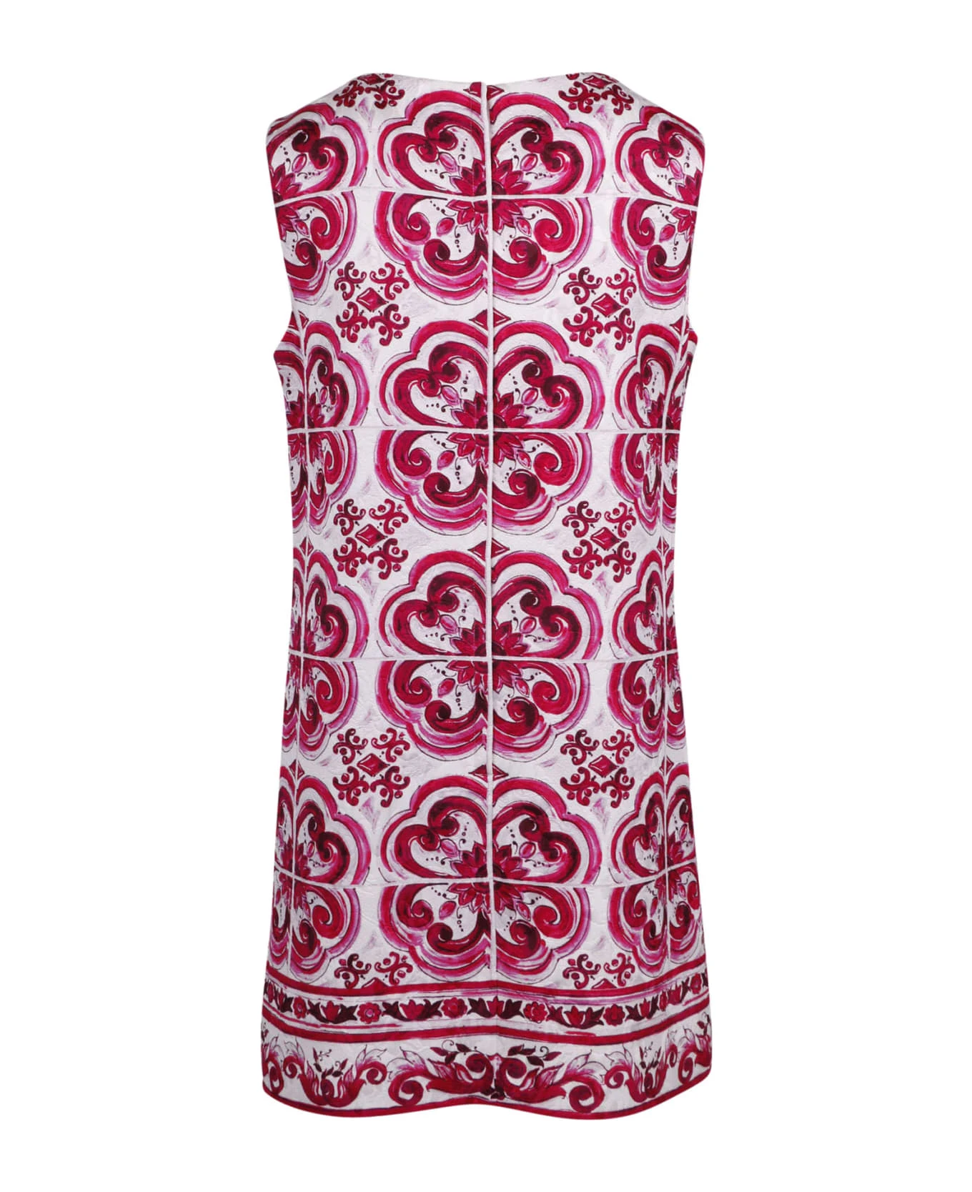 Majolica-print shift mini dress from DOLCE & GABBANAMajolica print. Round neck. Concealed rear zip fastening. Sleeveless. Shift style. Straight hem. Lining: 91% Silk, 9% Elastane; Outer: 67% Cotton, 33% Viscose. Made in Italy.