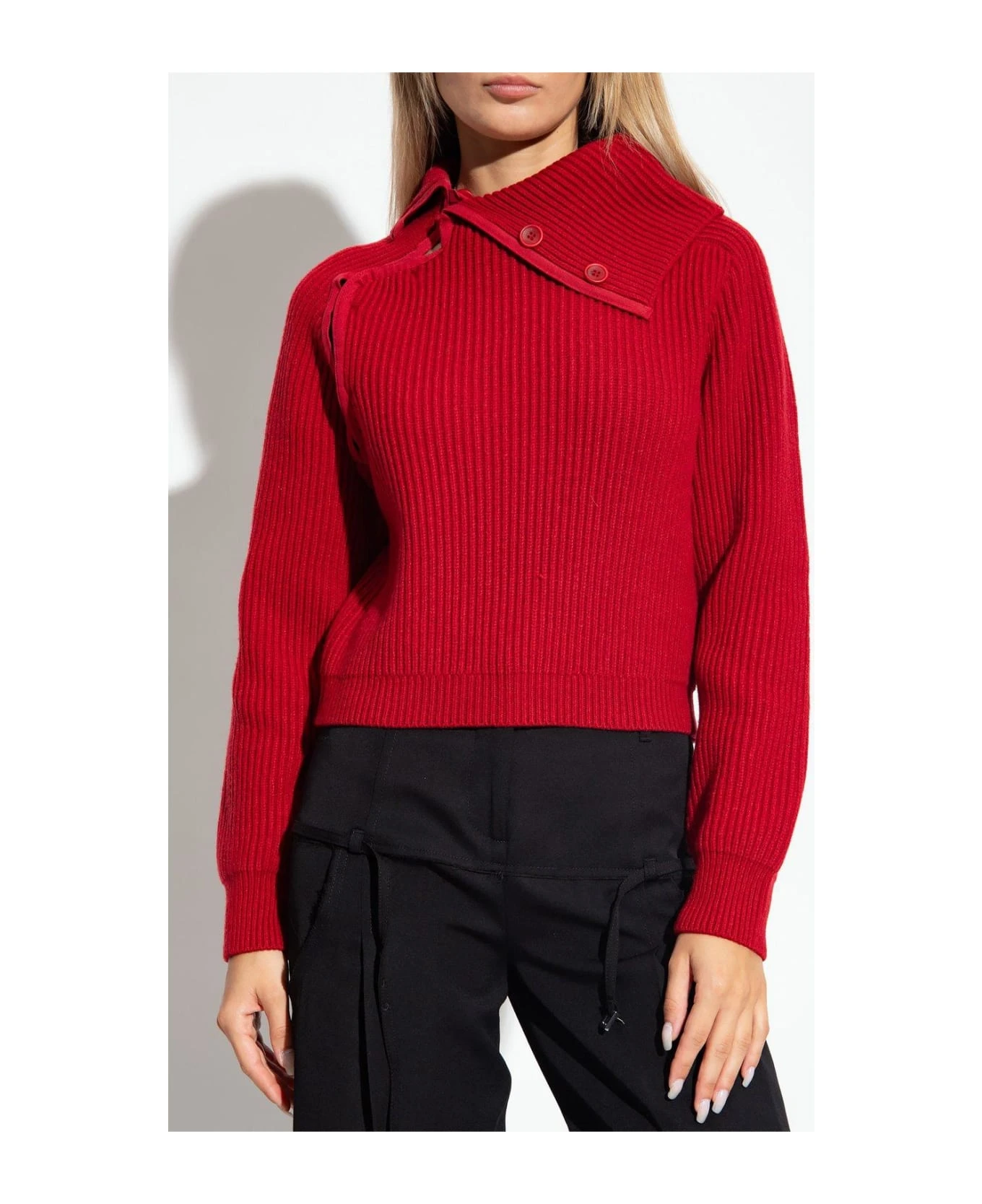 Red Asymmetric Mock-neck Sweater from Jacquemus