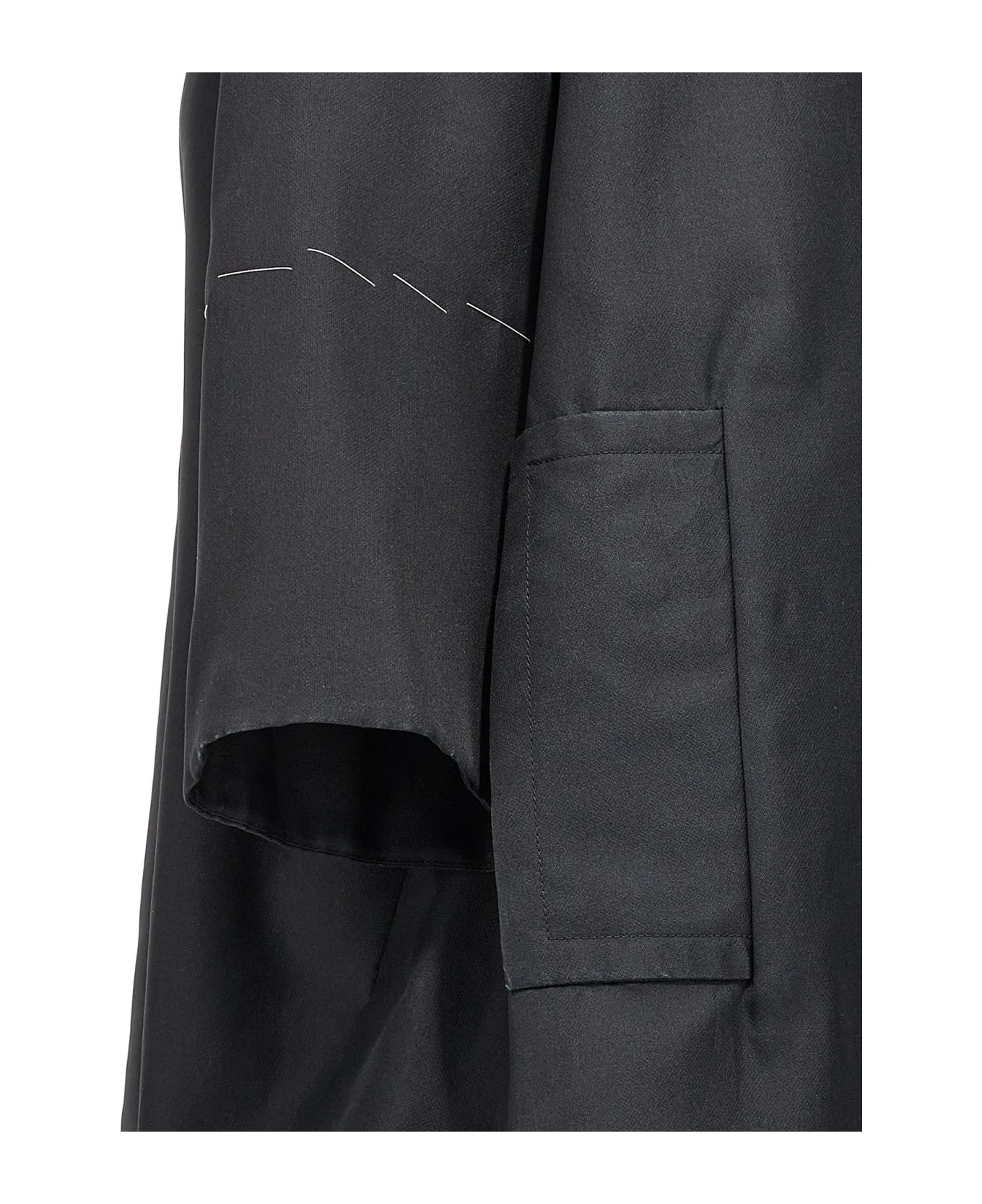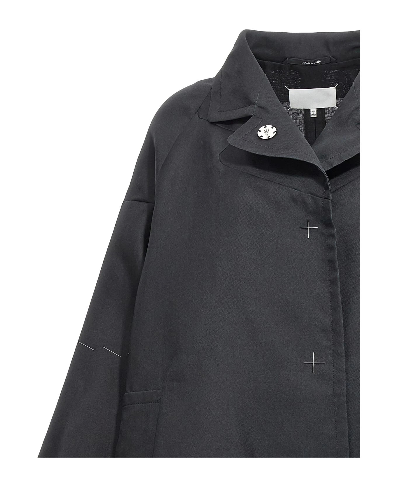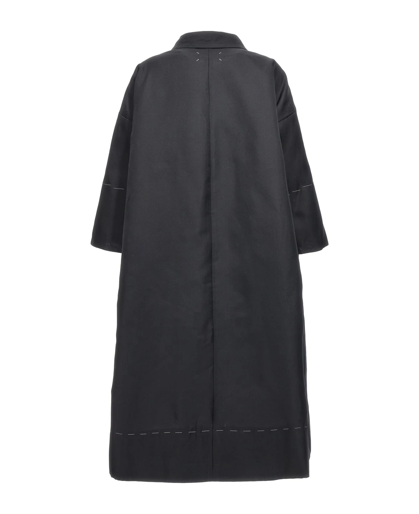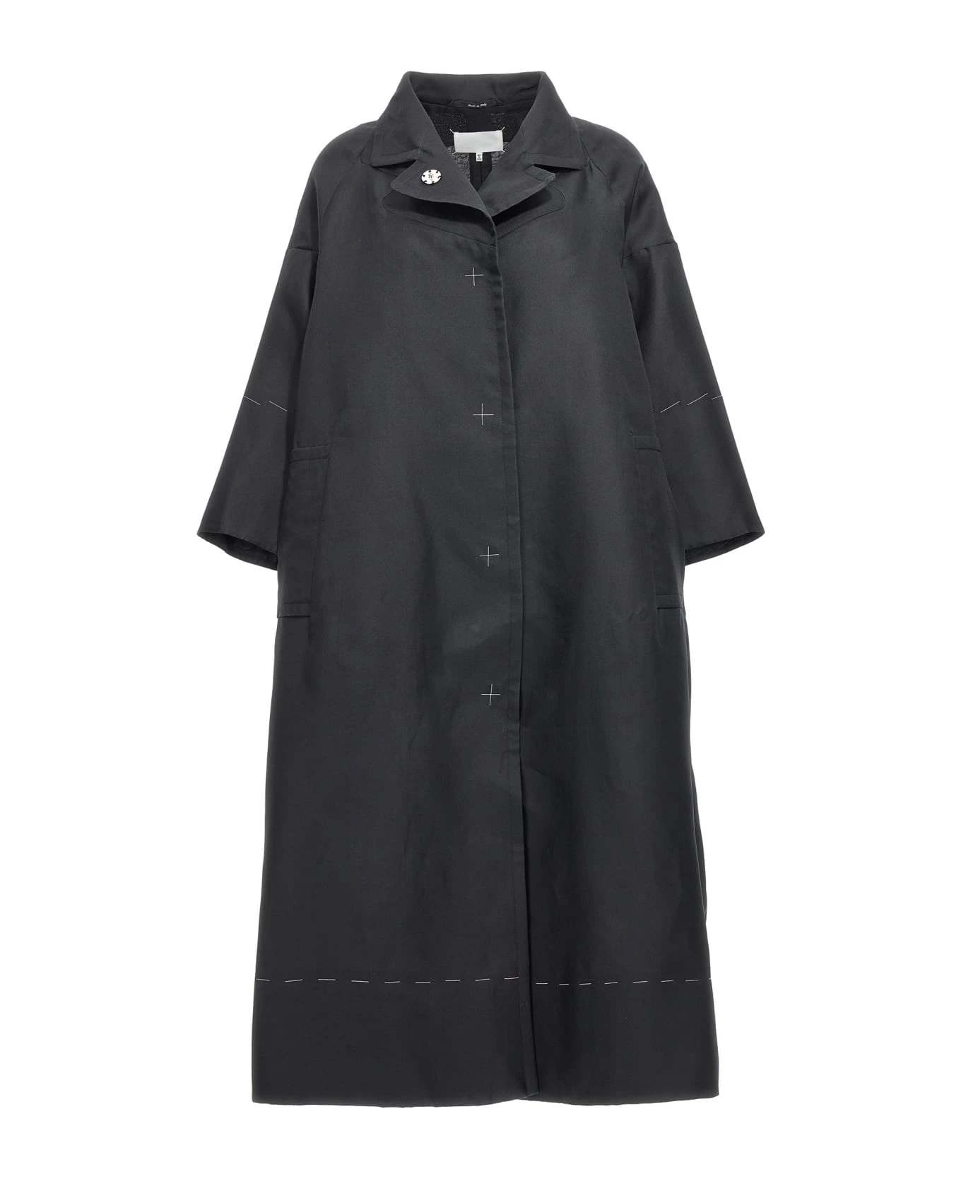 Silk coat with contrast stitching, a button closure, pockets and 3/4 sleeves.