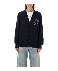 Embroidered Wool Cardigan By Maison Margiela. Featuring: