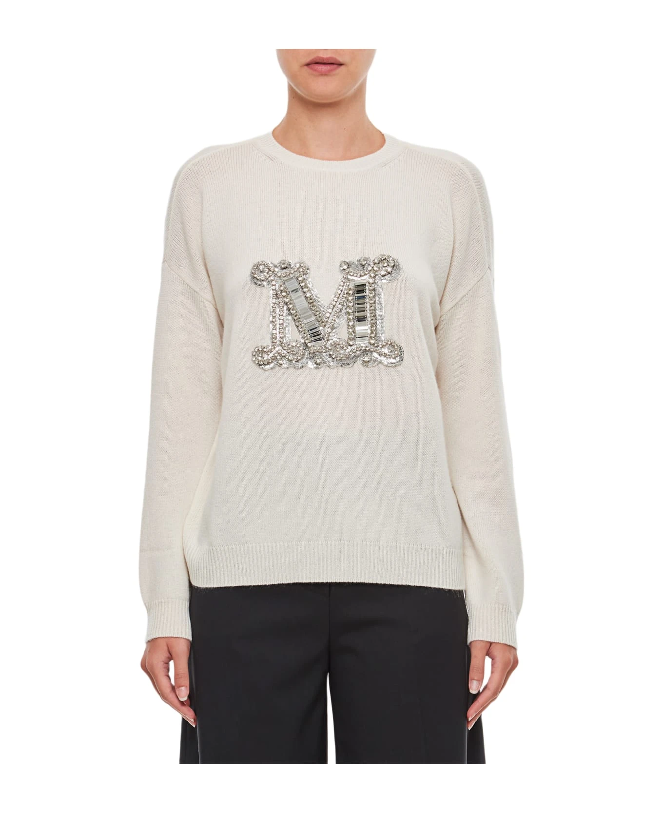Crewneck. Embellished M detail on the front. Ribbed collar, cuffs and bottom. Regular fit. Color: white.