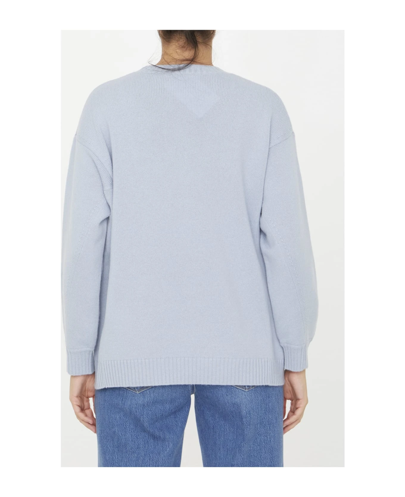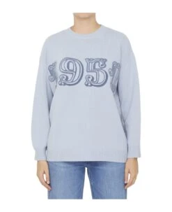 Long-sleeved crewneck Fido jumper in light-blue wool and cashmere with velvety 1951 embroidery on the front. Ribbed neck, cuffs and hem. Regular fit.