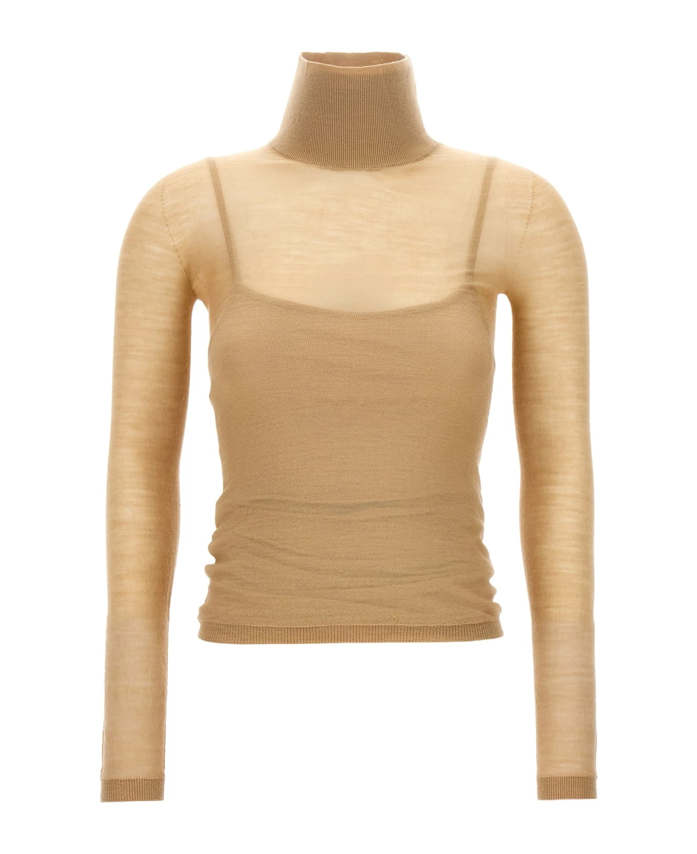 ‘Stresa’ sweater and top in slightly transparent virgin wool, slim style with turtleneck sweater.