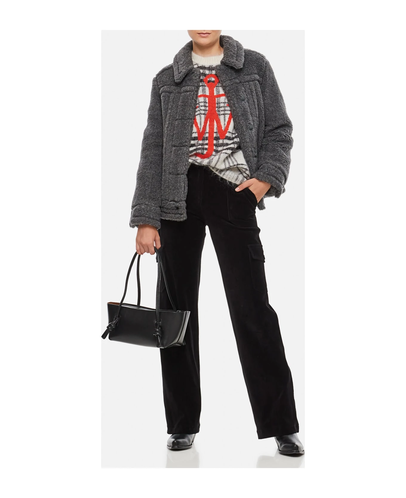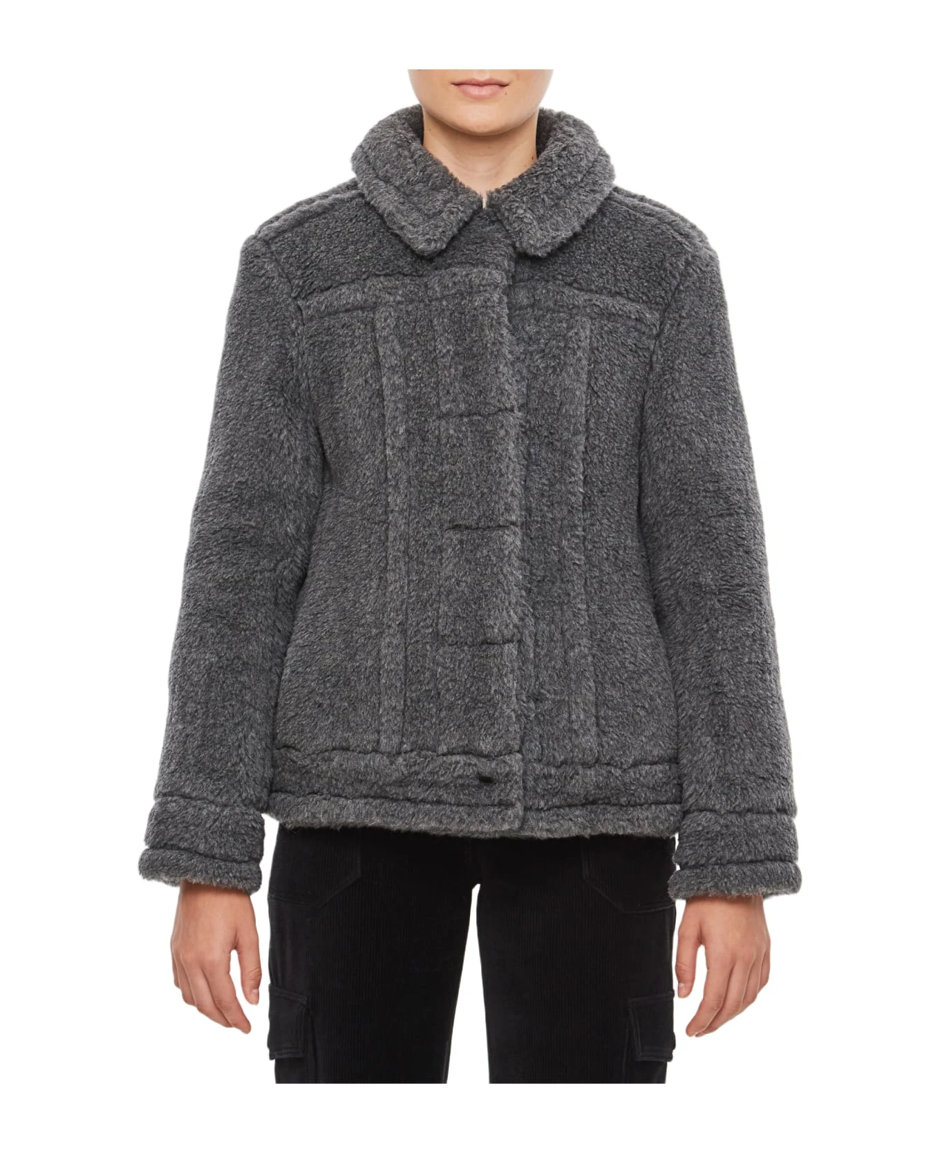Concealed front buttons closure. Pointed collar. Regular fit. Lined. Color: dark grey.