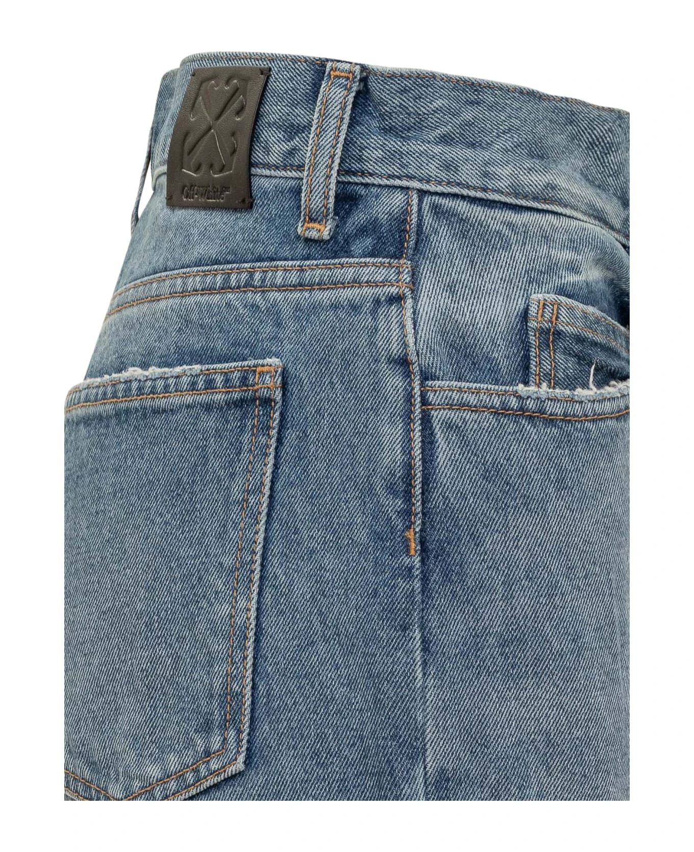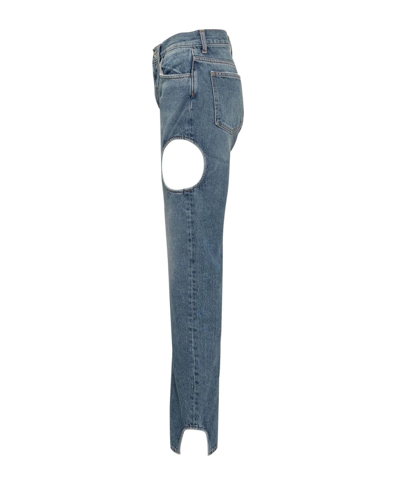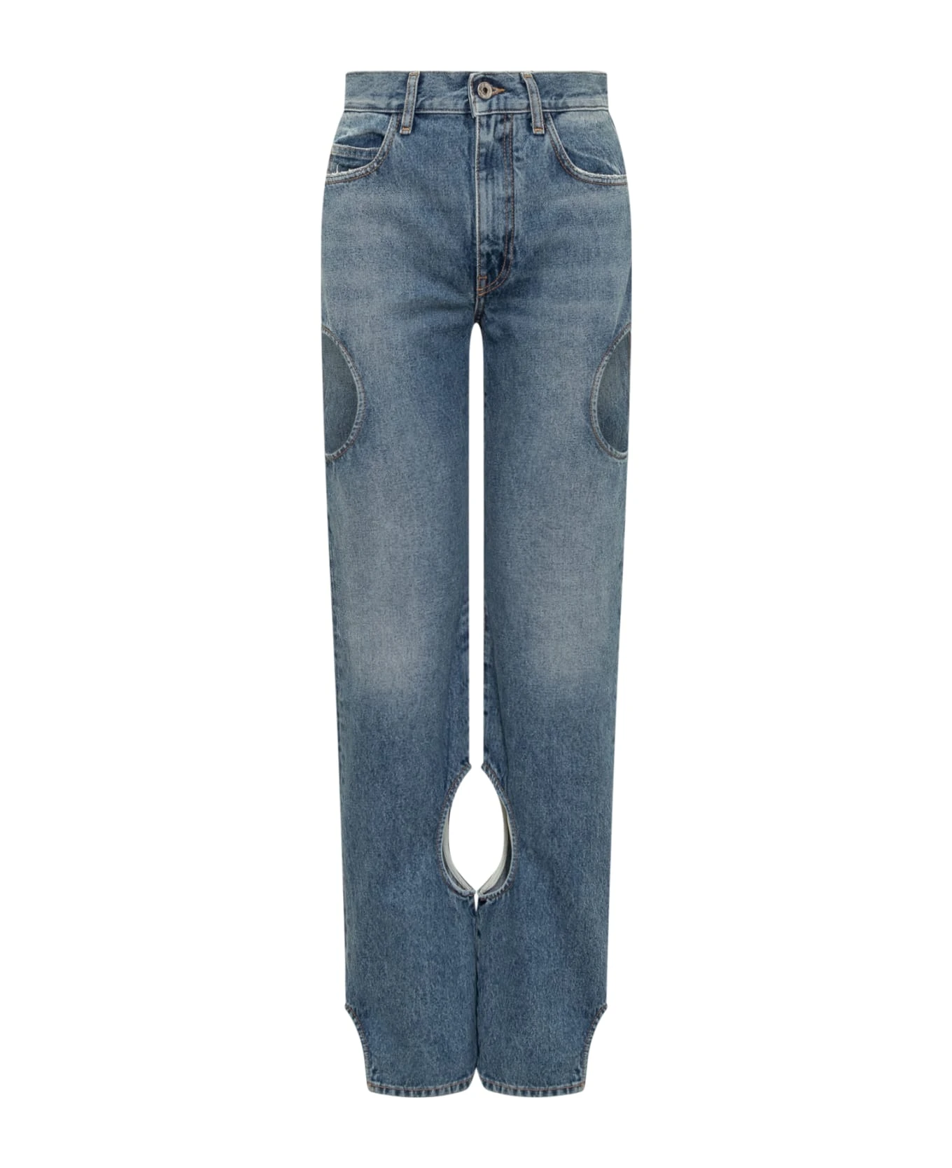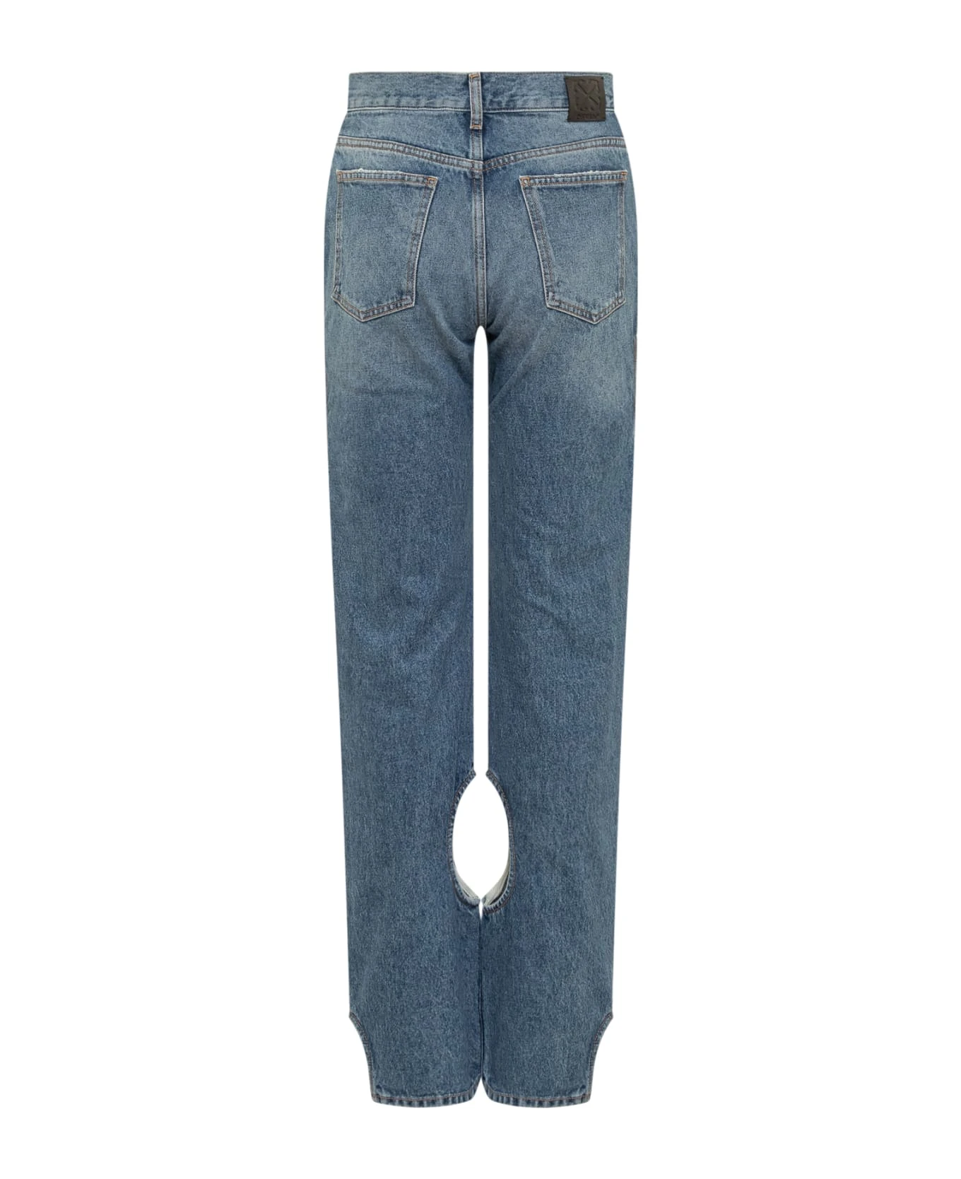 Long straight jeans. Zip and button closure. Belt loops. 5 pockets. Cut-out detail. Label logo on the back.