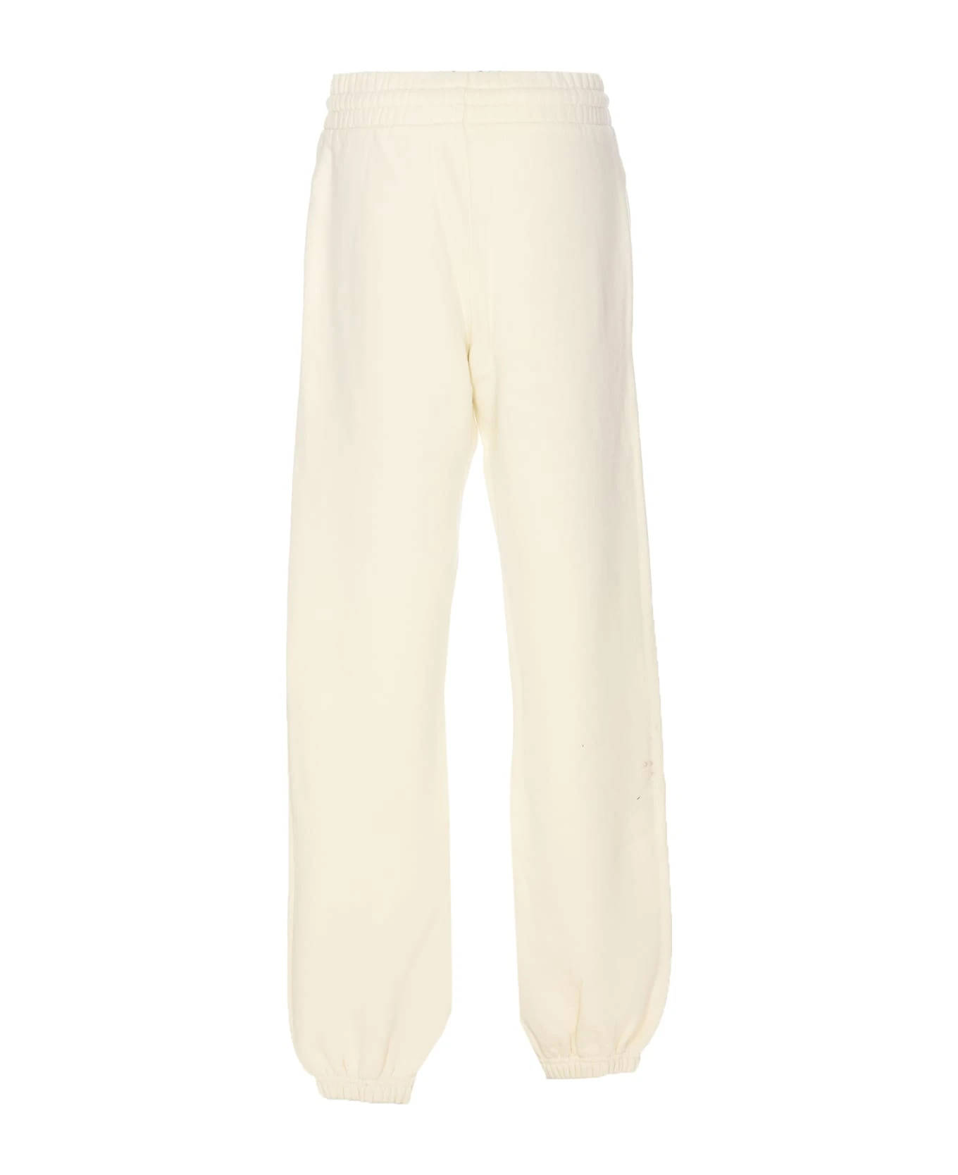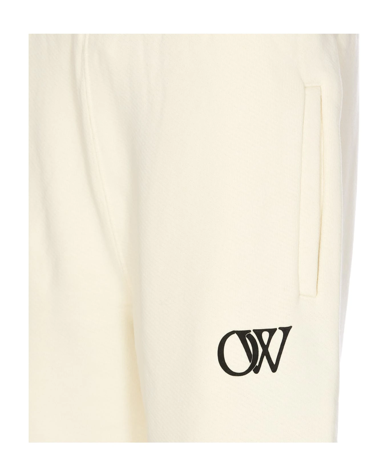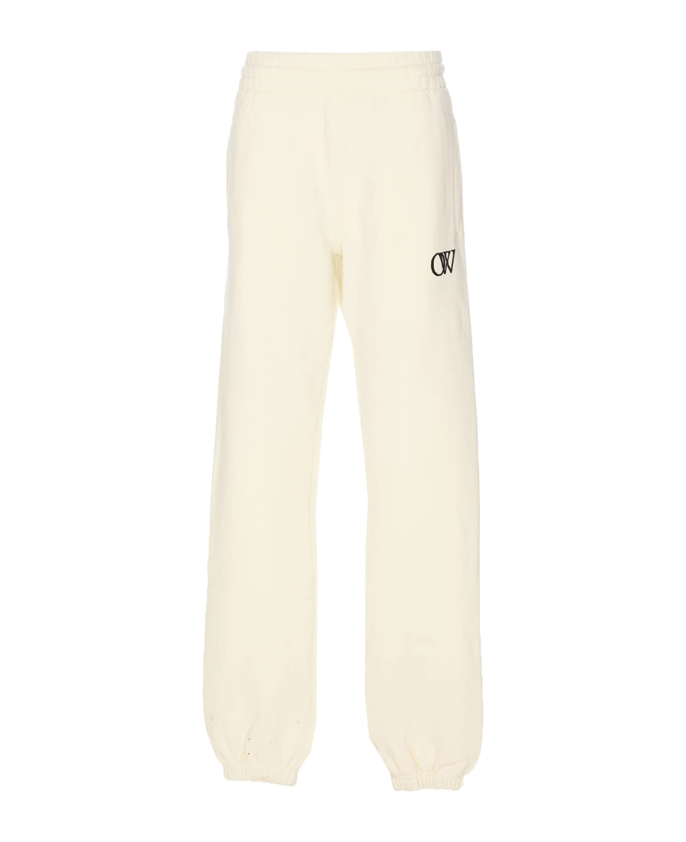 Off-White beige trackpants, elasticized, coulisse closure, cuffs at bottom, frontal OW logo